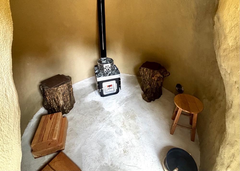 地元・土湯の土を用いてつくられた特別なサウナ。